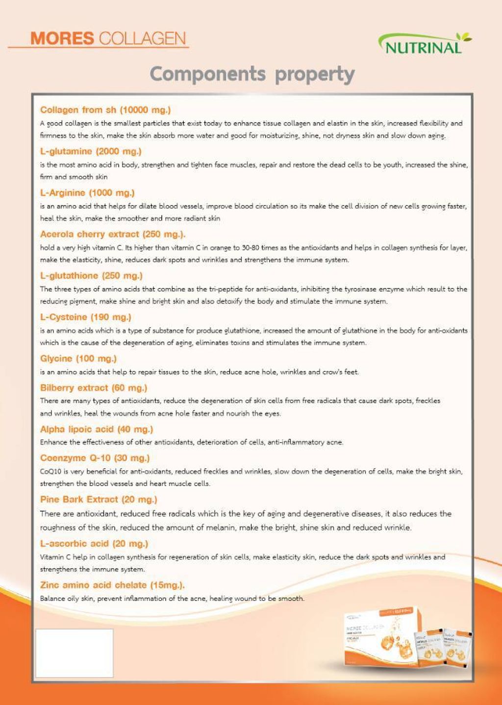 是身体中最普遍的氨基酸,巩固及紧致面肌,恢复死细胞,使皮肤健康,柔嫩红润而有光泽